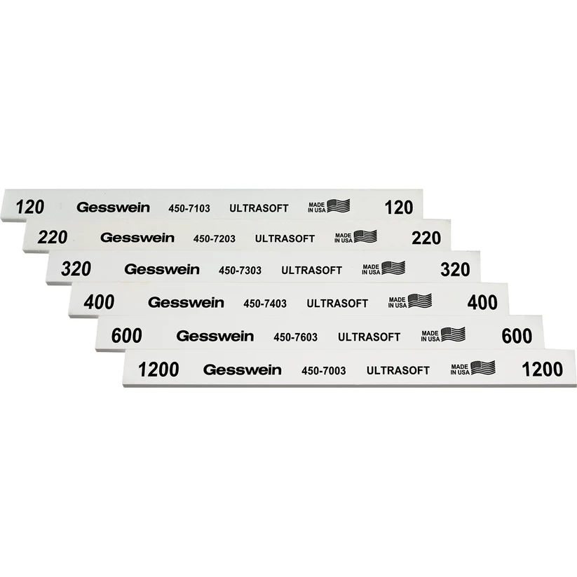 Gesswein White Polishing Stones contain aluminum oxide for removal of light scratches from metal surfaces, and are excellent for final finishing prior to using diamond compound.